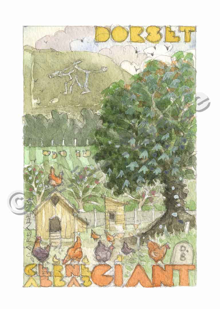 Cerne Abbas Giant Mounted Giclee Print by Alan Reade. Finished size 10" x 8" ready to frame. Greetings cards approx 150mm x 110mm.