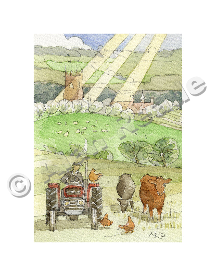 Damson Blossom. Mounted Giclee Print by Alan Reade. Finished size 10" x 8" ready to frame. Greetings cards approx 150mm x 110mm.