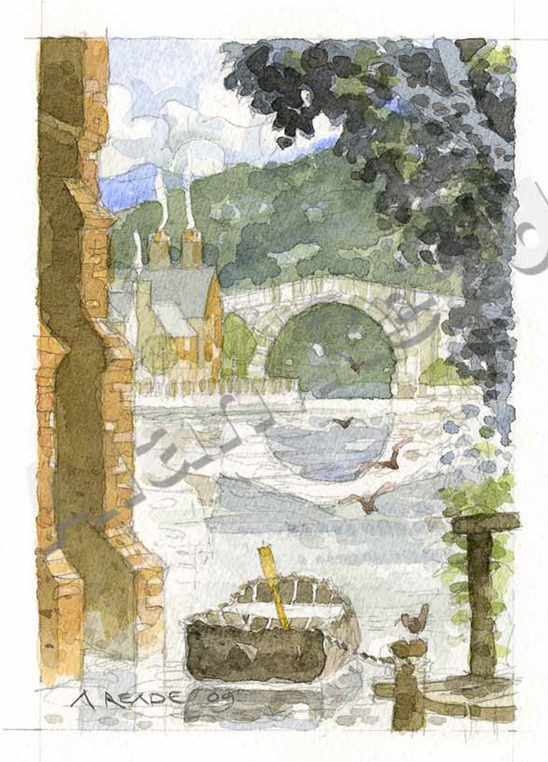 Ironbridge Mounted Giclee Print by Alan Reade. Finished size 10" x 8" ready to frame. Greetings cards approx 150mm x 110mm.