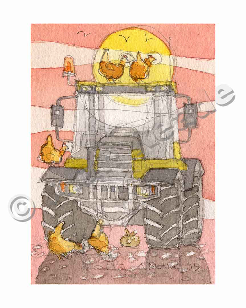 JCB Fastrac Mounted Giclee Print by Alan Reade. Finished size 10" x 8" ready to frame. Greetings cards approx 150mm x 110mm.