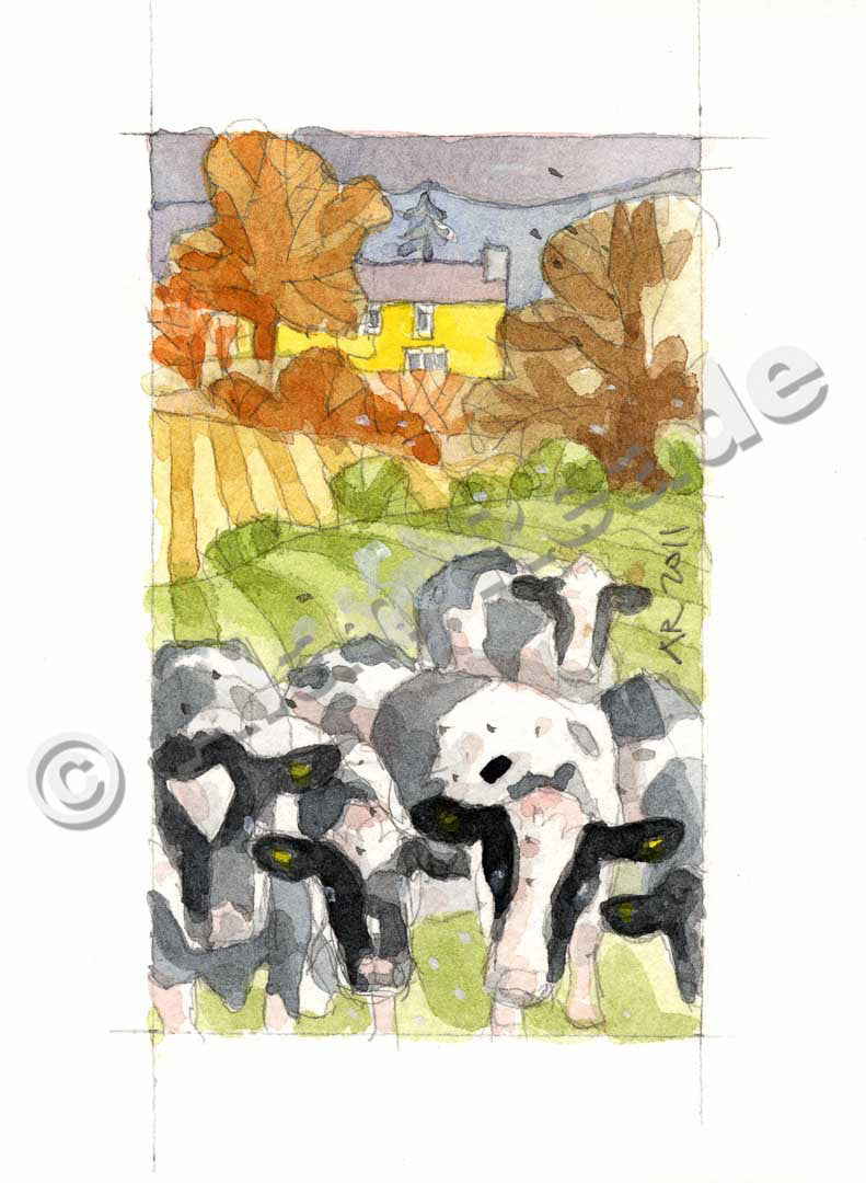 Pottre Ceredigion Mounted Giclee Print by Alan Reade. Finished size 10" x 8" ready to frame. Greetings cards approx 150mm x 110mm.
